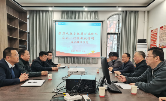 2023年3月16日上午,安徽省矿业机电装备有限责任公司李凤荣党委书记、董事长一行,来pp电子进行校企合作调研,进一步落实校企合作。汪建利副校长、朱昌杰院长及相关专业负责人参与本次调研。