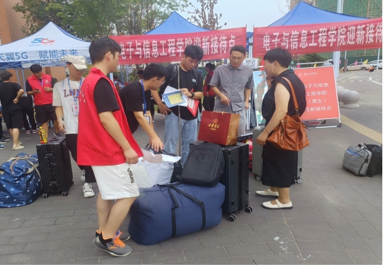 在本次迎新工作中,pp电子游戏官网的志愿者们热情接待每一位学生家长,并与他们进行沟通交流,耐心地对新生报到中的疑问进行讲解。各部门积极配合,有序进行接待工作,维持整个迎新现场的秩序。电信学院党员先锋队、学生会成员及学生干部在迎新工作中积极主动,引导每一位新生顺利办理交费、宿舍登记等入学手续。他们穿梭在宿舍楼、报到处、咨询处,校园里随处可见他们忙碌的身影,让每一位报道的新生倍感温暖和亲切。
