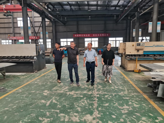 朱昌杰首先考察了安徽三星环保装备制造有限公司的生产线,吴光明董事长从企业规模、产品种类、技术发展等方面做了详细介绍。
