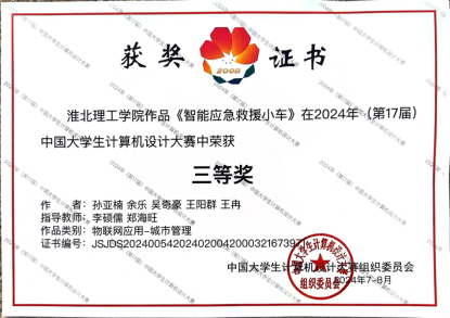 2024年8月13日至17日,第17届中国大学生计算机设计大赛全国总决赛在厦门举行,由pp电子教师李硕儒、郑海旺指导的孙亚楠、余乐、吴奇豪、王阳群、王冉所组成的参赛队伍的《智能应急救援小车》作品以及pp电子教师曹新建、沈元元指导的阳佳霖、张义轩、李浩然、臧宇祺、陈旭鹏所组成的参赛队伍的《临时路口行车安全隐患检测与预警系统》作品,在众多参赛作品中脱颖而出,均获得国家级三等奖。