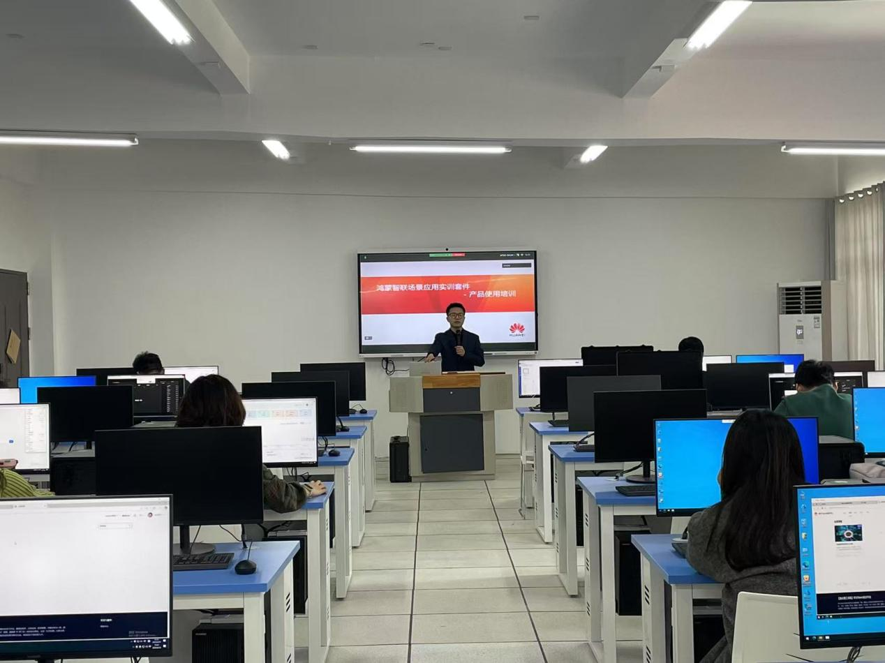 在随后的培训环节中,华为资深讲师围绕传感器原理与应用、嵌入式系统及应用、物联网技术三大核心课程展开,依托华为鸿蒙智联场景应用实训套件,通过“理论+实操”的一体化教学模式,助力各位参训教师快速掌握鸿蒙生态下的智能设备开发能力。