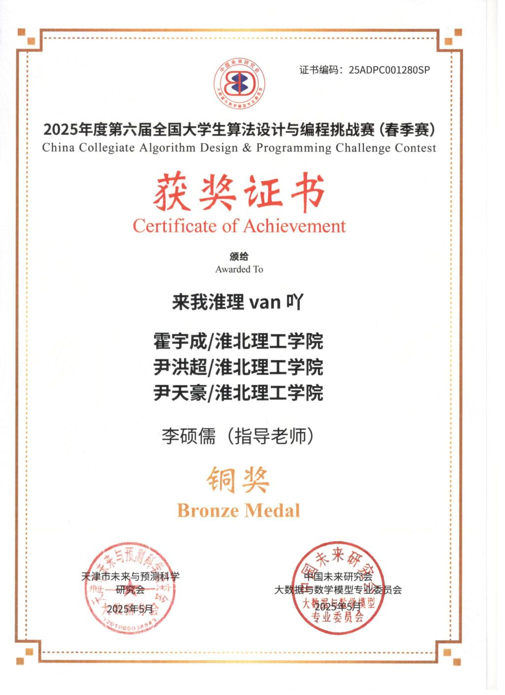以赛促学强能力,算法竞技展锋芒。pp电子pp电子游戏官网学子凭借扎实专业功底,获2025年度第六届全国大学生算法设计与编程挑战赛(春季赛)全国铜奖、获2025年安徽省机器人大赛——程序设计赛道省级二等奖、获2025年中国大学生程序设计竞赛全国邀请赛(郑州)全国铜奖。