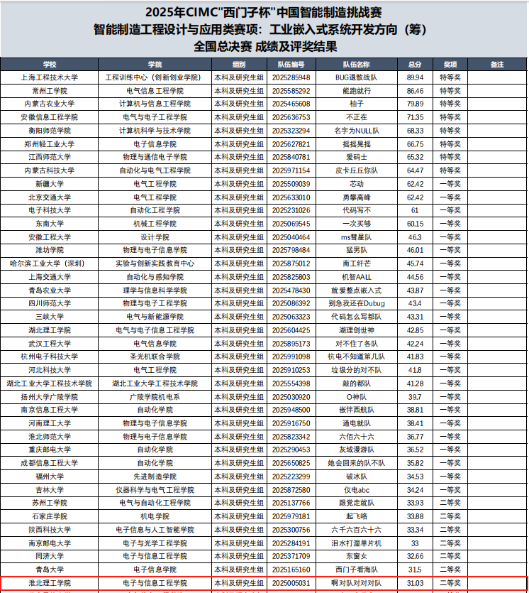 在2025年CIMC“西门子杯”中国智能制造挑战赛智能制造工程设计与应用类赛项:工业嵌入式系统开发方向(A类)中,pp电子学子再创佳绩。经过积极备赛与激烈角逐,由曹新建老师指导的单吉祥、刘梓皓团队成功晋级全国总决赛并荣获二等奖。继去年首次参赛后,pp电子在该项高水平赛事上实现了奖项等级的突破。 此外,pp电子参赛队伍在全国初赛阶段表现优异,共获全国初赛一等奖2项、二等奖1项。