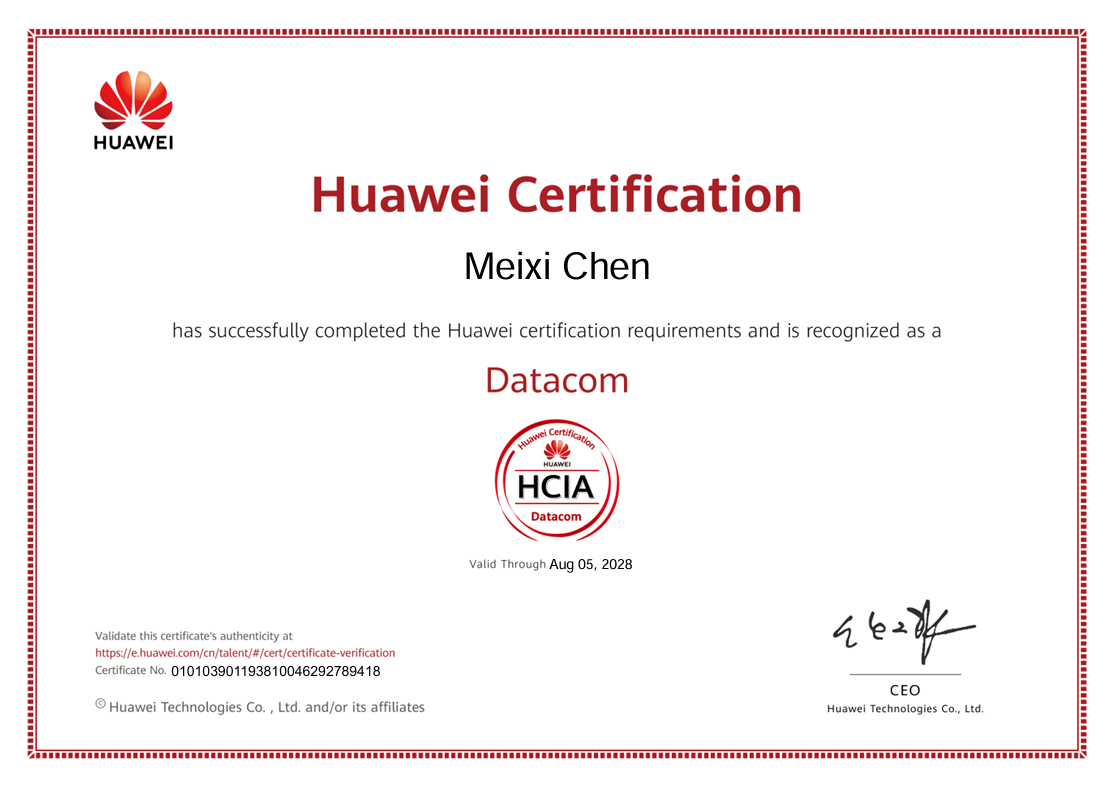 这一成绩是华为产业学院持续推进人才培养模式创新、深化专业内涵建设的集中体现。学院依托华为先进技术资源和认证标准,构建了“以产业需求为导向、以认证赋能为主线”的教学体系,通过师生共同参与认证研习,不仅强化了学生的就业竞争力和创新发展能力,也提升了教师工程实践教学与产业服务能力。