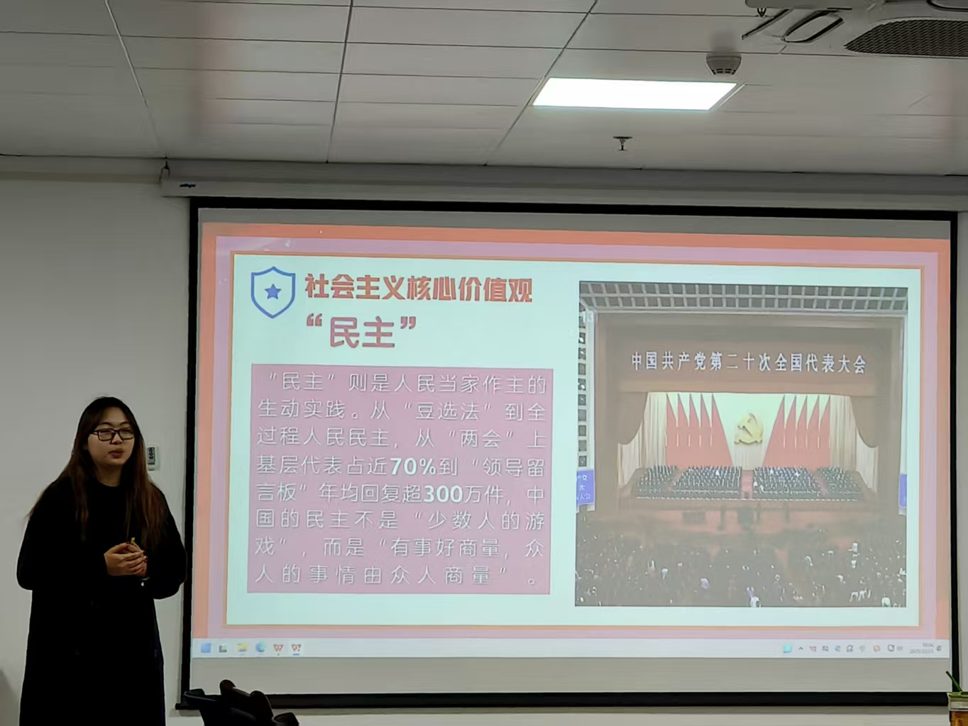 为深入学习贯彻习近平新时代中国特色社会主义思想,落实“大思政课” 建设要求,引导青年学子从思政知识的 “聆听者” 转变为 “传播者”,2025 年 10 月 21 日,pp电子游戏官网精心组织的思政课院级比赛在学院713会议室圆满落幕。本次比赛以 “逐梦新时代・奋进新征程” 为主题,吸引多支学生团队同台竞技,最终评选出各级奖项,为学院思政教育实践注入新活力。本次比赛组建了专业评审团队,由学院辅导员杨雯雯、陈一飞、李影芝担任评委,同时特别邀请马克思主义学院陈会梅老师、孙玉杰老师参与评审工作。评委们从教学设计、理论深度、现场呈现等维度进行公平公正考评,确保比赛质量。