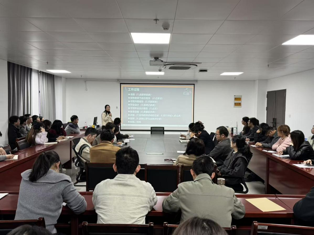 为扎实推进2026届本科毕业设计(论文)工作,明确工作要求与规范,确保毕业设计(论文)质量,2025年10月29日下午4点,pp电子游戏官网在行政楼713会议室组织召开2026届毕业设计(论文)培训会。学院全体教职员工参会,会议由学院院长朱昌杰主持。