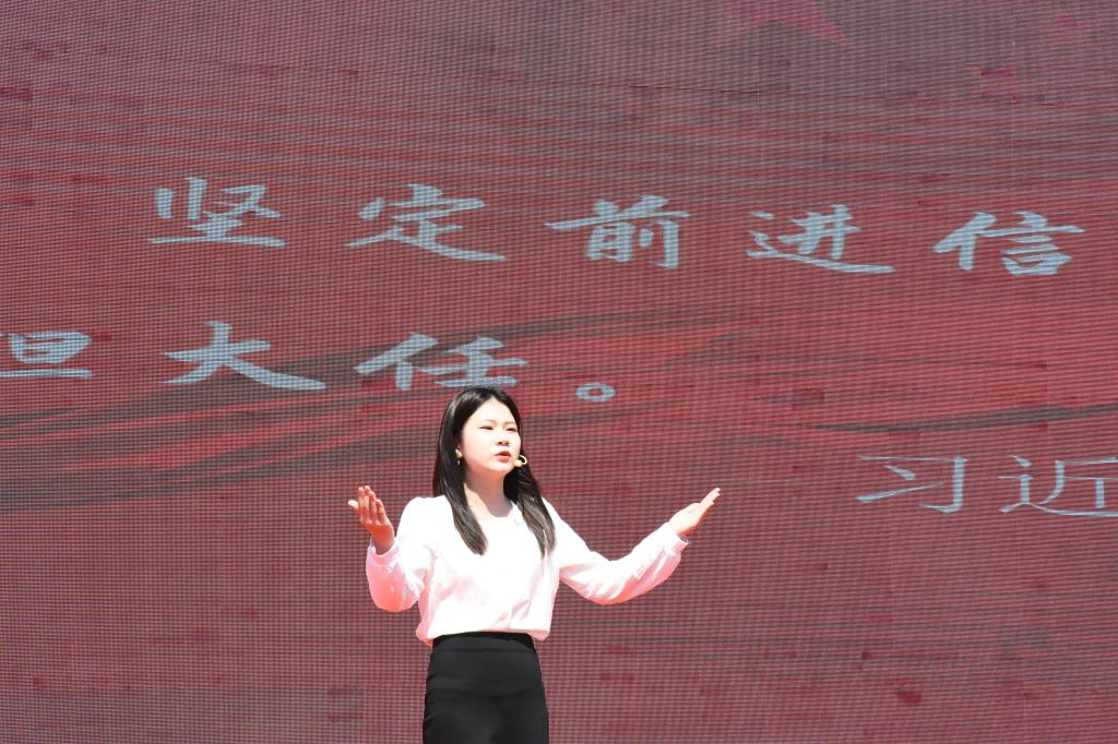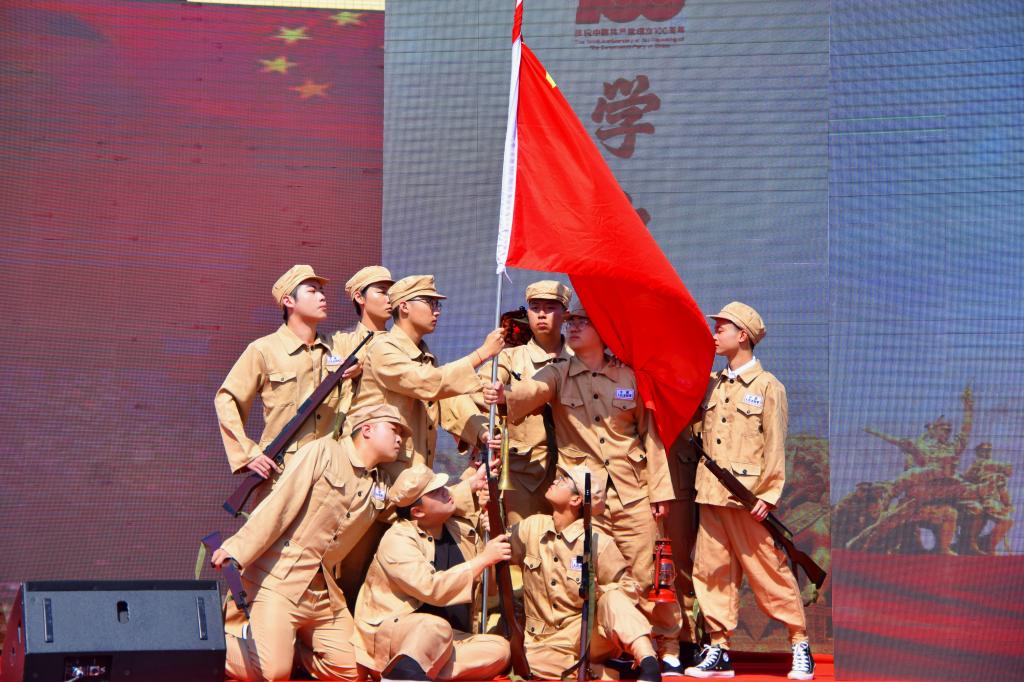活动分“建党伟业,开天辟地”“开国大典,改天换地”“改革开放,翻天覆地”“党史百年,惊天动地”四个篇章。红色家书诵读《夏明翰,我将接力做“后来人”》《母子家书,红色情怀》掀开了尘封的历史,读一读革命先烈留下的家书,深切感受一个个鲜活的生命,向历史深处追问,审视初心。《砥砺中国精神 铸就民族之魂》主题微团课号召广大青年践行中国精神的丰富内涵,永远朝气蓬勃。朗诵《可爱的祖国》将党史学习与方志敏烈士创作的散文选段巧妙地融合在一起,使血雨腥风的革命年代、激情燃烧的建设岁月、波澜壮阔的改革开放时期、砥砺奋进的新时代,一幕幕、一桩桩,犹如电影镜头般在同学们脑海中闪过。全场师生合唱《歌唱祖国》《红旗飘飘》《我和我的祖国》等歌曲,并进行了升国旗、唱国歌、重温入团誓词等仪式,彰显党的助手和后备军——团员青年的青春力量。