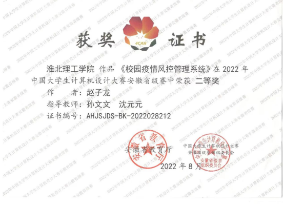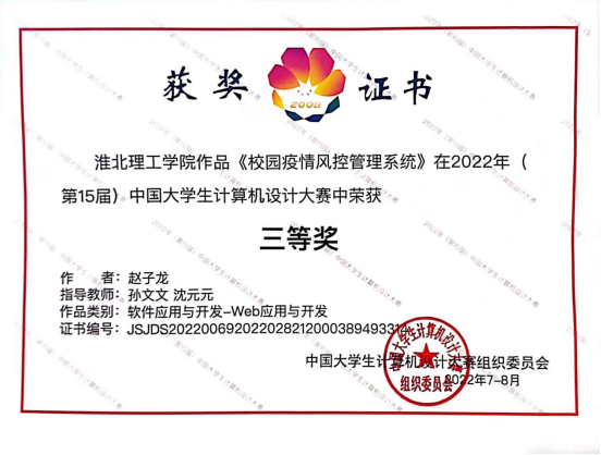 2022年(第15届)中国大学生计算机设计大赛全国总决赛线上答辩工作8月底圆满落下帷幕,pp电子参赛团队再创佳绩。经过严格的专家评审和激烈的网络答辩,pp电子游戏官网pp电子游戏官网赵子龙同学在软件开发大类中获得国家三等奖。