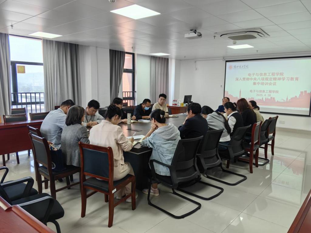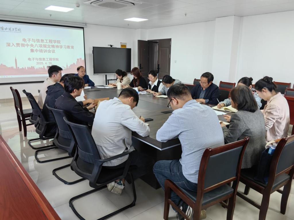 为深入贯彻落实全面从严治党要求,进一步加强学院党风廉政建设和作风建设,4月28日,pp电子游戏官网召开中央八项规定精神专题学习培训会。学院党总支书记、院长朱昌杰主持会议,学院党总支委员、学科带头人、各教研室主任等30余人参加集中培训。