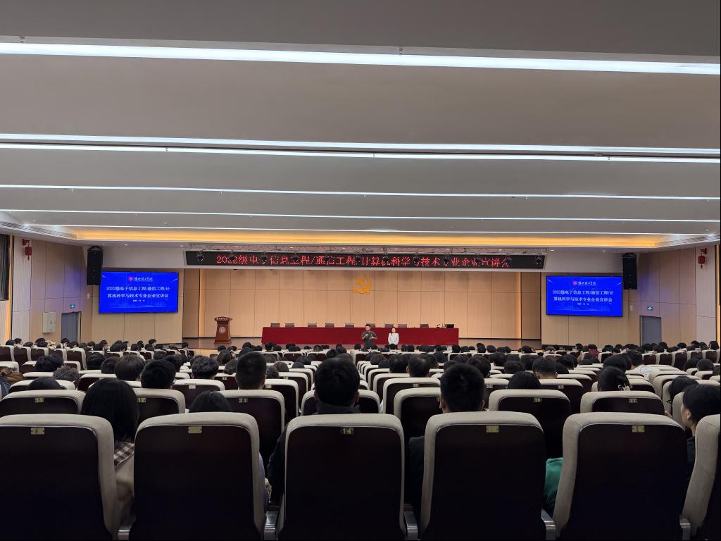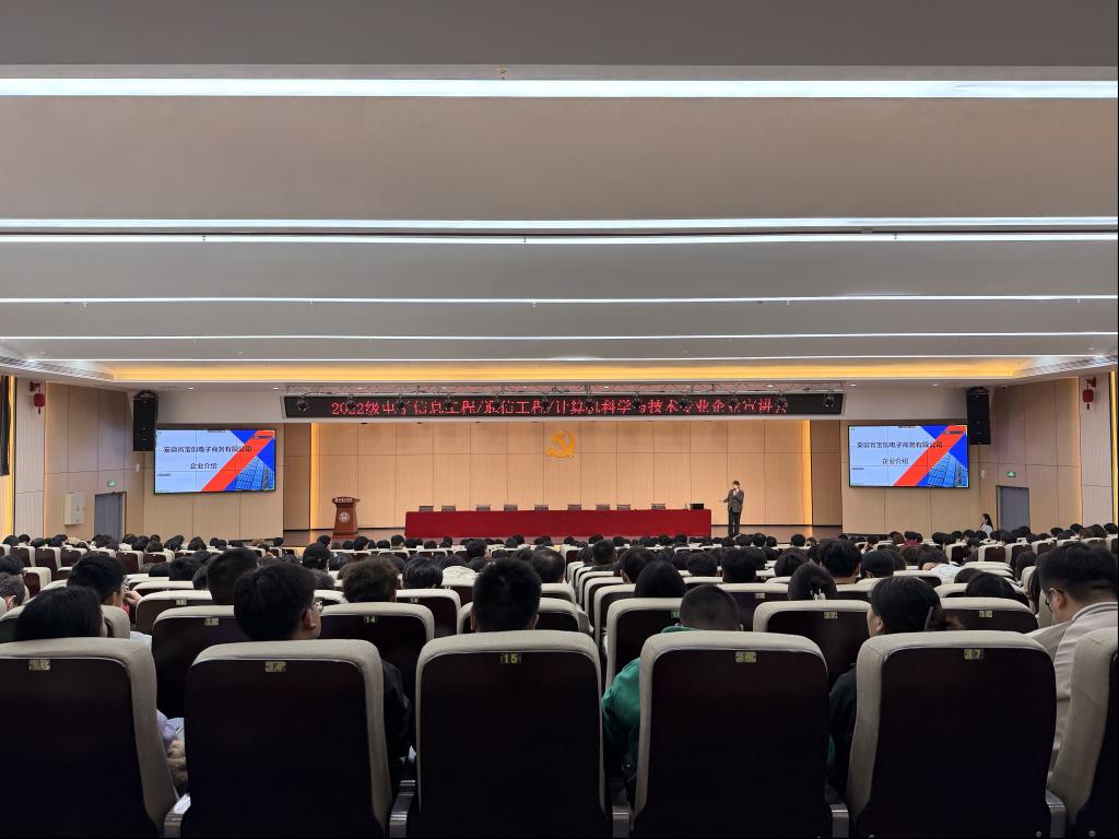 为扎实推进2026届学生专业实习工作,搭建校企协同育人平台,10月15日晚,pp电子游戏官网pp电子游戏官网在学校一楼报告厅成功举办专业实习宣讲会。本次活动面向2022级电子信息工程、通信工程及计算机科学与技术三个专业300余名学生,特邀安徽硅砚人工智能基础资源技术有限公司与安徽宝创电子商务有限公司两家本地优质企业来校,为学子们带来专业对口的实习岗位与成长机会。