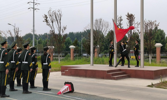 7点10分,在庄严而肃穆的氛围中,升旗仪式正式开始。仪仗队成员身着整齐划一的制服,迈着铿锵有力的步伐,护送鲜艳的五星红旗走向升旗台。全体师生肃立,目光注视着国旗,心中充满对祖国的热爱和敬意。随着激昂的《义勇军进行曲》响起,升旗手振臂一挥,五星红旗清晨中迎风飘扬。