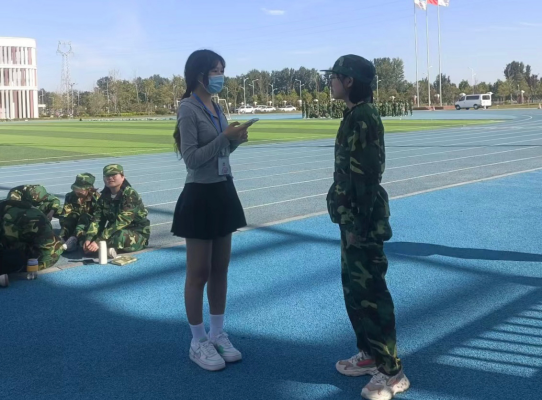 在同学们的休息期间,院学生会成员在2022级pp电子游戏官网辅导员带领下对新生进行了军训的相关采访。在采访一连连长时,他表示:大学生进行军训的意义目的是为了提高学生的思想政治觉悟,激发爱国热情,增强国防观念,所以进行爱国主义、集体主义和革命英雄主义教育,培养艰苦奋斗的作风,提高学生的综合素质。