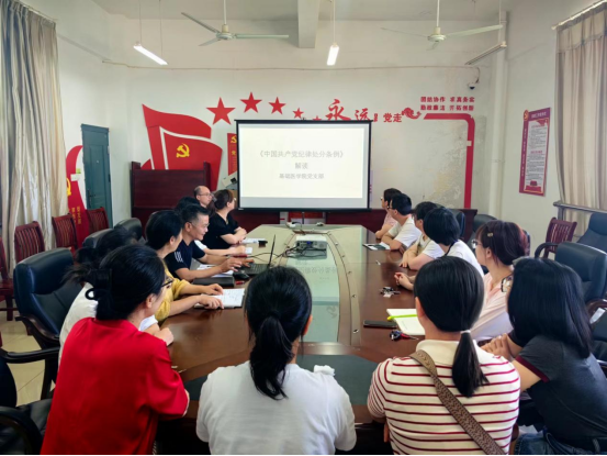 为进一步增强党员的纪律意识和规矩意识,bat365中文官方网站党支部于2024年7月4日举办了一场别开生面的专题党课。本次党课由bat365中文官方网站党支部委员、综合办主任吴龙祥同志主讲,他围绕《中国共产党纪律处分条例》(以下简称《条例》)进行了深入细致的解读,为全体党员上了一堂生动而深刻的纪律教育课。