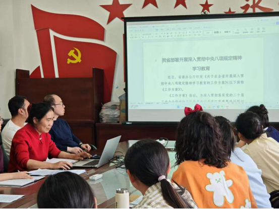 启动会上,周洁副书记首先组织全体党员集中学习了与中央八项规定精神相关的会议提纲。重点围绕二十届党中央四次全会主要精神、省纪委十五届五次全会主要精神以及2025年教育系统全面从严治党工作会议精神展开深入解读。通过对这些重要会议精神的细致剖析,使党员们深刻认识到全面从严治党的重要性和紧迫性,以及中央八项规定精神在党的建设中的关键地位。