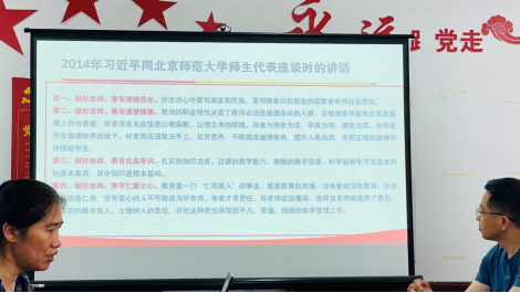 bat365中文官方网站周洁副院长从解释著名教育家陶行知先生的名言“学高为师,身正为范”切入主题,介绍了古今中外关于师德的名人名言,着重学习了习近平总书记关于师德方面的讲话,如何做“四有好老师”“四个引路人”“四个相统一”等,详细诠释了新时代好老师标准,以及新时代高校教师职业行为十项准则,组织教师选看了违反高校教师职业行为十项准则典型案例,并进行热烈讨论。推荐教师观看优秀教师先进典型的影视剧《黄大年》《一个都不能少》等。