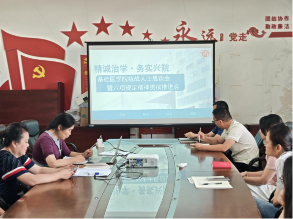 5月20日下午,bat365中文官方网站组织召开“精诚治学・务实兴院”统战人士座谈会暨八项规定精神贯彻推进会,3位无党派人士及6位党外知识分子参会,学院党支部副书记周洁主持会议并讲话。