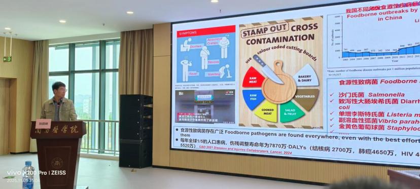 本次论坛以“聚焦前沿、智启未来”为主题。同济大学教授刘海鹏以《细胞应激介质与肿瘤治疗》为题,深入解析细胞应激介质作用机制,分享肿瘤治疗领域的前沿研究思路与方向;中国医学科学院北京协和医学院教授魏强围绕《认识病原微生物——感染与免疫》,系统阐述病原微生物特性与感染机制,结合最新科研成果展现免疫调控研究新进展;江西省疾病预防控制中心副主任技师李健雄聚焦《高通量测序技术及其在疾病防控中的应用》,介绍技术发展现状并结合实践案例,说明其在传染病溯源、慢性病防控等场景的应用价值;江西省疾病预防控制中心刘道峰博士以《免疫学快检新技术开发及在食源性疾病中的应用》为主题,讲解新技术研发逻辑与优势,分享其在食源性疾病快速检测、风险预警中的实践成果。